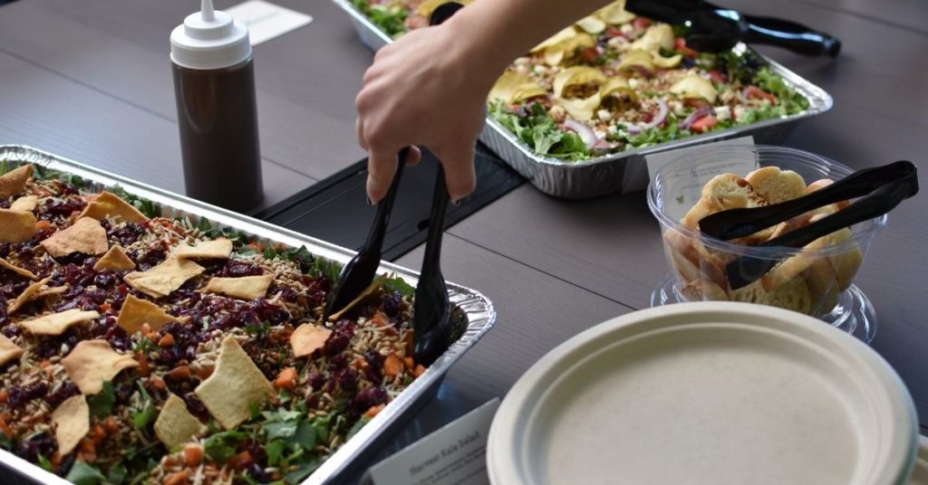 To make your party run smoothly, it is important to prep in advance. Before the party, wash and chop all the greens and vegetables. Roast the butternut squash, sweet potatoes, and other vegetables the day before. You can also cook the proteins in advance. Keep everything in separate containers and store them in the fridge until it’s time to set up the salad bar. This will make putting together the salad bar a breeze.